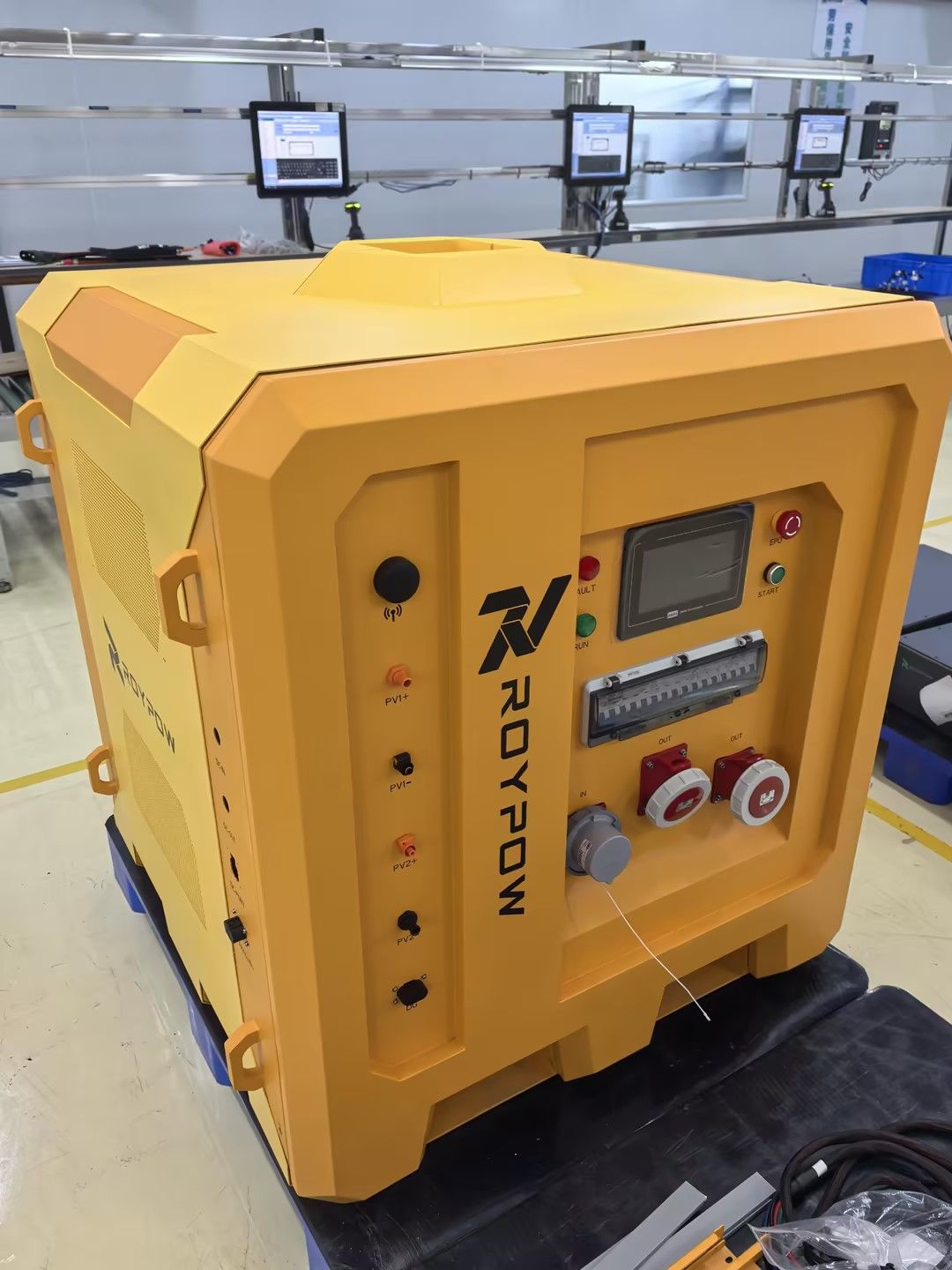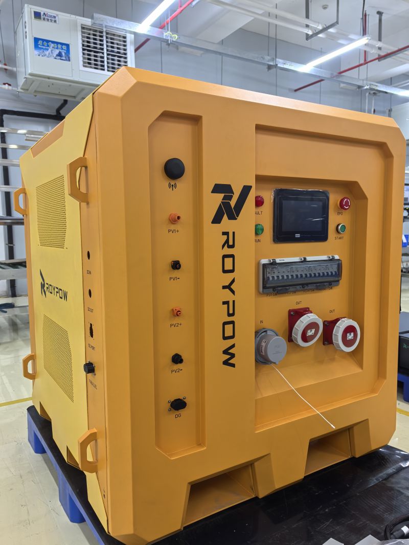 The RoyPow PC15KT is a 3 phase battery energy storage system that has 15 kW of rated power with a 22.5 kVA apparent power output. It is a complete mobile battery storage system that includes a hybrid inverter, Solar MPPT input and smart energy management system. Built with the same robust canopy as the Power Store the PC15KT is suitable for all types of weather and supports three-phase and single-phase power charging and three-phase and single-phase power output. Like the Power Store it is a plug and play unit that has intelligent EMS control and considered start up processes. It also supports auto start/stop procedures with diesel generators. The unit can also be used in parallel with 6 units to create a huge storage capacity of 90 kWh. This new edition to the RoyPow range of battery energy storage systems is emissions and noise free to provide energy for construction sites and equipment such as hoists and cranes that use infrequent power spikes in demand for operation. The use if BESS to reduce the use of diesel and petrol generators is now a creating a real solution for decarbonising construction.